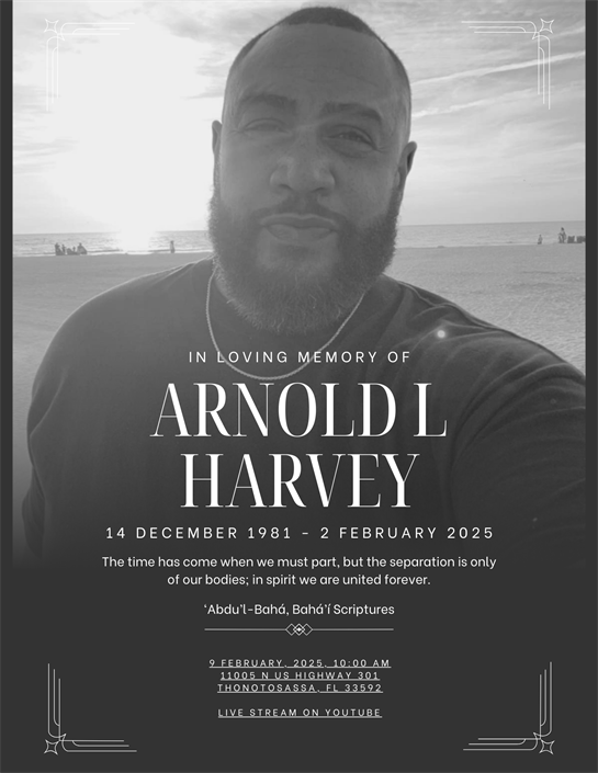 Arnold Laverne Harvey II was a motivational speaker, author, and active member of the Baha’i faith who was passionate about sharing the message of Baha’u’llah with others. He inspired and encouraged people with his testimony as a Read Obituary